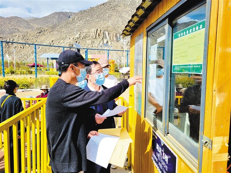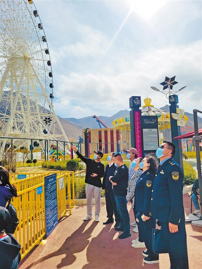 圖為拉薩市市場(chǎng)監(jiān)督管理局執(zhí)法人員在游樂(lè)場(chǎng)等客流量集中的場(chǎng)所進(jìn)行抽查。