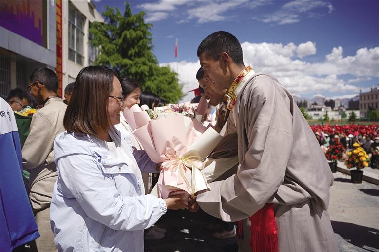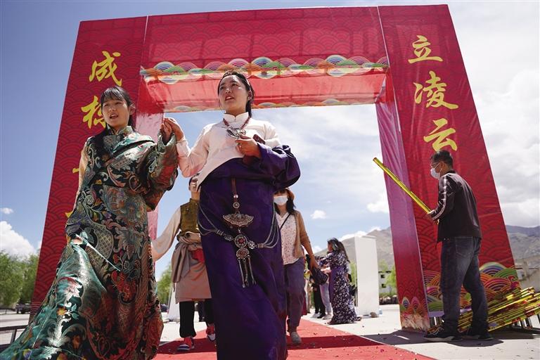 走進(jìn)拉薩市第四高級(jí)中學(xué),校園里每個(gè)角落都流露出喜悅與溫馨,同學(xué)們身著色彩鮮艷的民族傳統(tǒng)服裝,帶著自信的笑容,在父母與老師的陪伴下,走過(guò)“成人門(mén)”,踏上“成才路”,通向“成功門(mén)”。此時(shí)的他們意氣風(fēng)發(fā),青春的面龐如同朝陽(yáng)一般閃爍著光芒,滿懷豪情地憧憬精彩的人生。高三學(xué)生朗色占堆告訴記者:“今天是特別值得紀(jì)念的日子,以后我們都是成年人了,會(huì)勇于承擔(dān)責(zé)任,對(duì)自己的行為負(fù)責(zé),努力成為一個(gè)有知識(shí)、知感恩、有責(zé)任、有擔(dān)當(dāng)?shù)男聲r(shí)代新青年。”