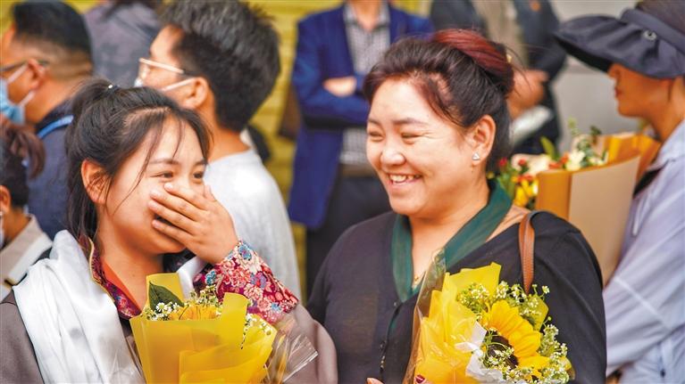 看到兒子從熙熙攘攘的人群中走出來,嘎瑪斯塔趕緊把花遞了上去,順便給了兒子尼瑪一個(gè)大大的擁抱。“發(fā)揮得還行,應(yīng)該可以考進(jìn)理想的大學(xué)?!蹦岈斬Q起大拇指為自己點(diǎn)了一個(gè)贊。
