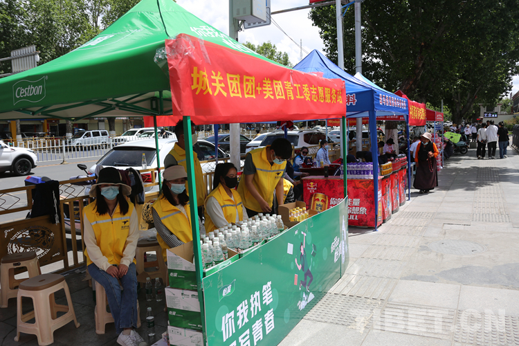 圖為愛心企業(yè)在考點(diǎn)外設(shè)置的“愛心助考點(diǎn)” 攝影:王佳豪