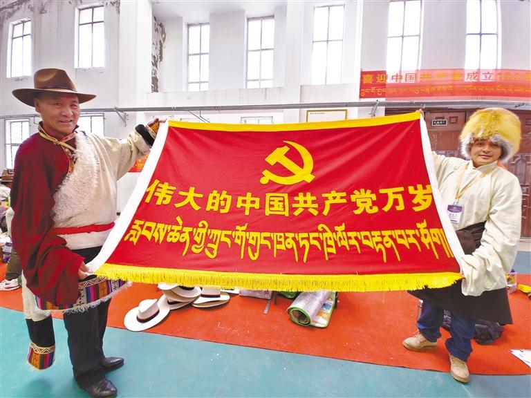 也有不少牧民,希望把藏北牧民愛黨愛國(guó)愛家鄉(xiāng)的熱情注入到傳統(tǒng)工藝當(dāng)中。在比賽現(xiàn)場(chǎng),記者看到很多牧民在傳統(tǒng)的氆氌和背包上刺繡、拼貼出黨徽、國(guó)旗、天安門等圖案,或繡出“偉大的中國(guó)共產(chǎn)黨萬(wàn)歲”“鄉(xiāng)村振興那曲奮進(jìn)”等字樣。