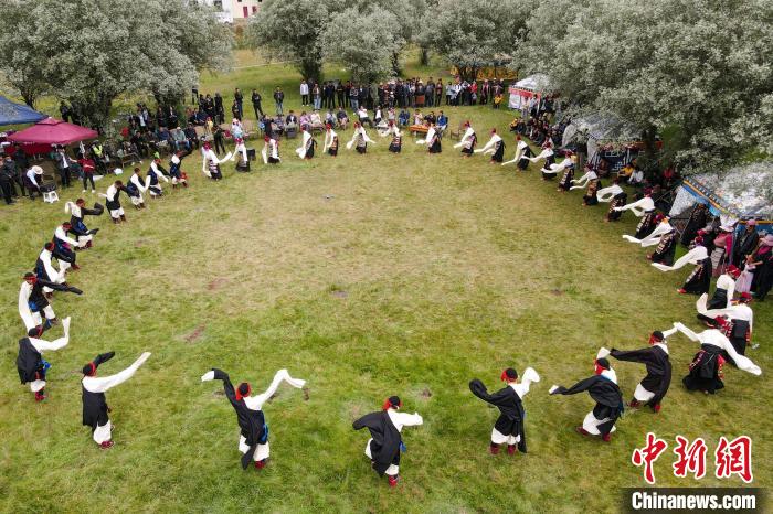 圖為西藏昌都丁青縣民眾跳鍋莊舞?!〗w波 攝
