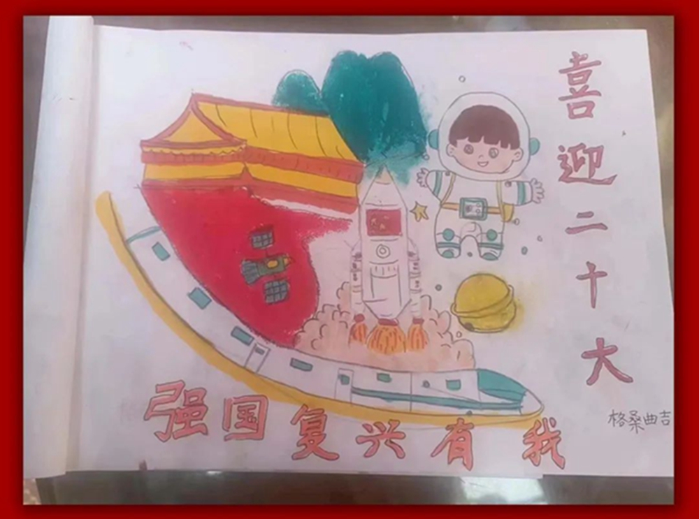 中國西藏網訊 為慶祝黨的二十大勝利召開,西藏自治區(qū)日喀則市委宣傳部、市文化局主辦的“共慶盛會 祝福祖國”日喀則市第三屆少兒才藝大賽舉行。圖為日喀則市第三屆少兒才藝大賽美術類獲獎作品。(中國西藏網 圖文來源:文化日喀則微信公眾號)