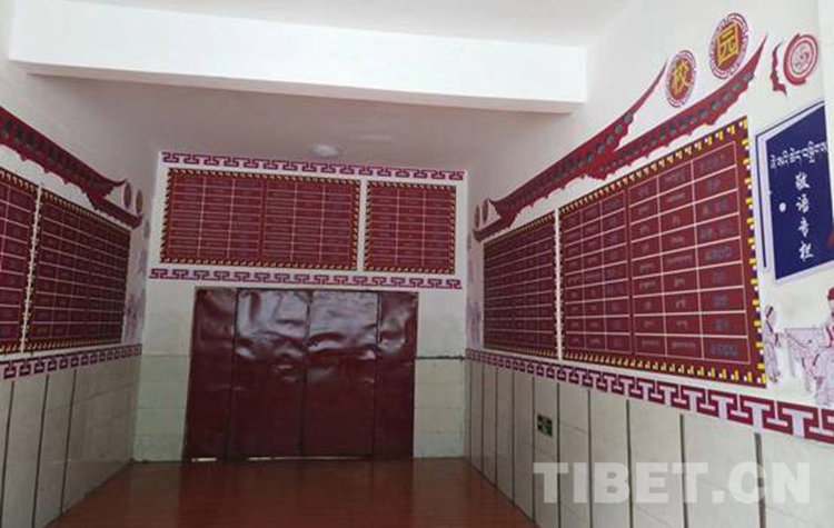 圖為西藏自治區(qū)那曲市比如縣羊秀鄉(xiāng)小學(xué)為了幫助孩子們隨時隨地學(xué)好藏語敬語,精心布置了敬語專欄 攝影:米瑪旺久
