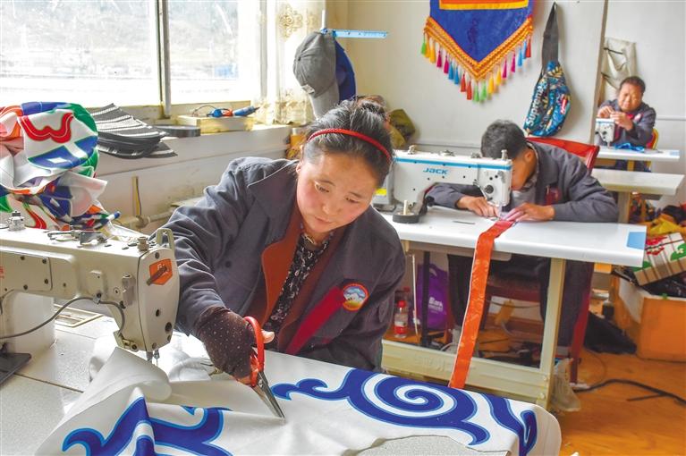 圖為“雙創(chuàng)”孵化基地的格拉夏手工業(yè)有限責(zé)任公司員工在制作帳篷。記者 劉楓 攝