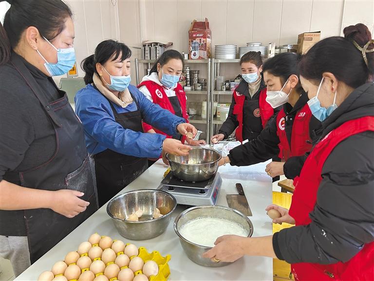 圖為社區(qū)婦女同志們在專業(yè)教師的指點下學(xué)習(xí)制作糕點。記者 張猛 謝筱純 攝