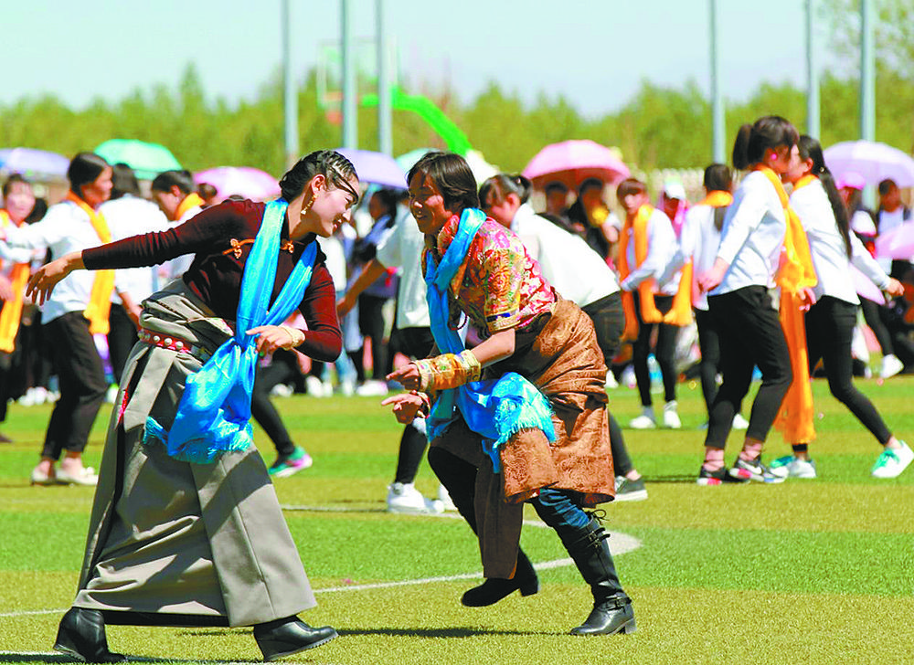 民族集體舞大賽現(xiàn)場。青海柴達(dá)木職業(yè)技術(shù)學(xué)院供圖