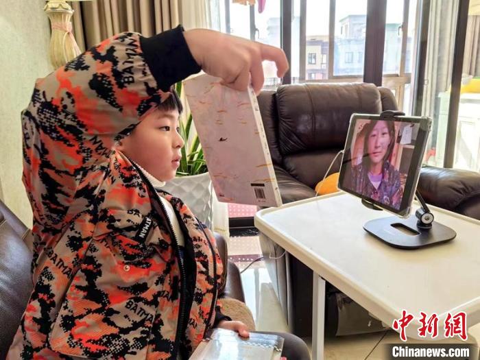 周承躍視頻連線卓瑪笑姐姐,并展示送給姐姐的新書。 周丹 攝