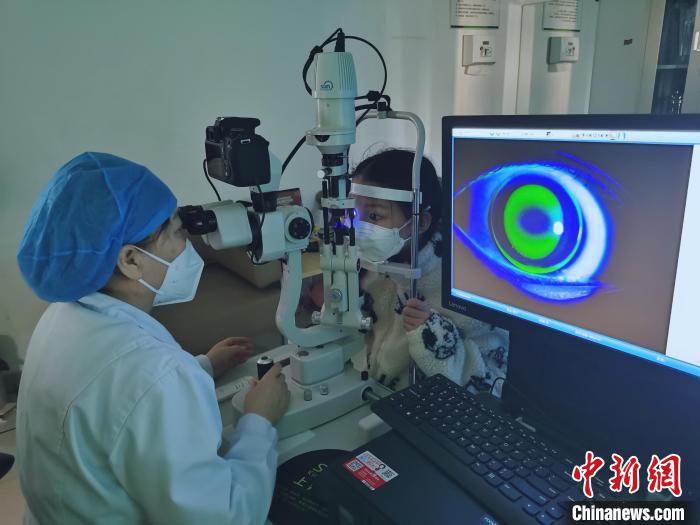 圖為青海省一醫(yī)療機(jī)構(gòu)眼科專家開展眼科檢查?!?zhí)砀?攝