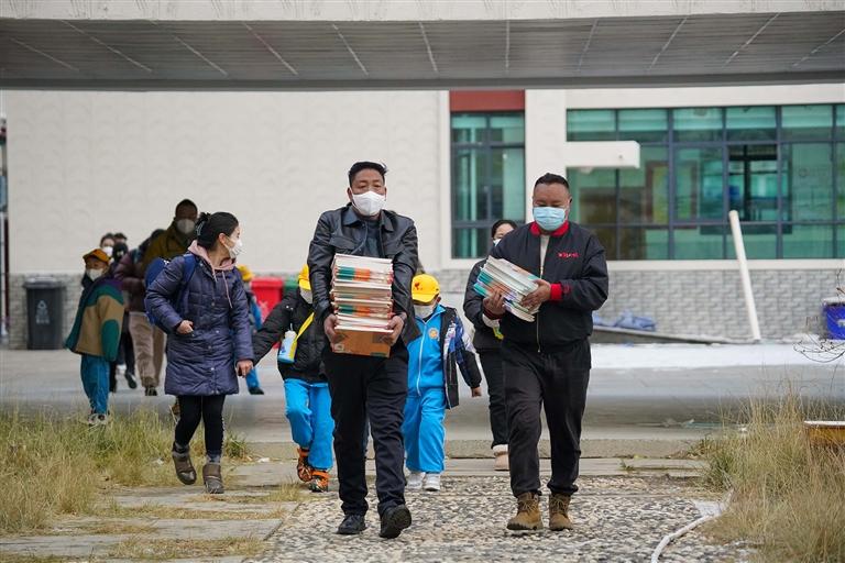 在拉薩市第八中學(xué)校門(mén)口,學(xué)生們滿(mǎn)懷希冀與欣喜,來(lái)到闊別已久的校園,校園內(nèi)恢復(fù)了往日的熱鬧。學(xué)生們?cè)诩议L(zhǎng)的陪同下背著行囊,拖著行李箱回到各自寢室。衛(wèi)生大掃除是必不可少,他們對(duì)床鋪和個(gè)人用品進(jìn)行了整理。隨后,同學(xué)們有序完成了新書(shū)本的領(lǐng)取,感受著翻開(kāi)書(shū)本泛出的陣陣墨香。與自己的姓名一起簽在書(shū)本扉頁(yè)的還有新學(xué)期的美好愿景。