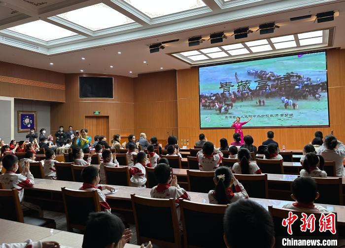 圖為活動當(dāng)天西藏文化博物館的志愿者們帶領(lǐng)小朋友參觀館內(nèi)展覽。 李晗雪 攝
