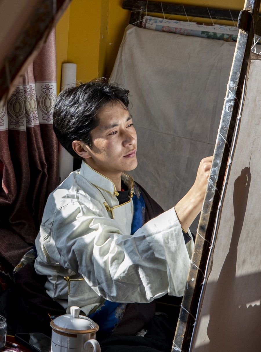 西藏日喀則:唐卡繪就五彩前程