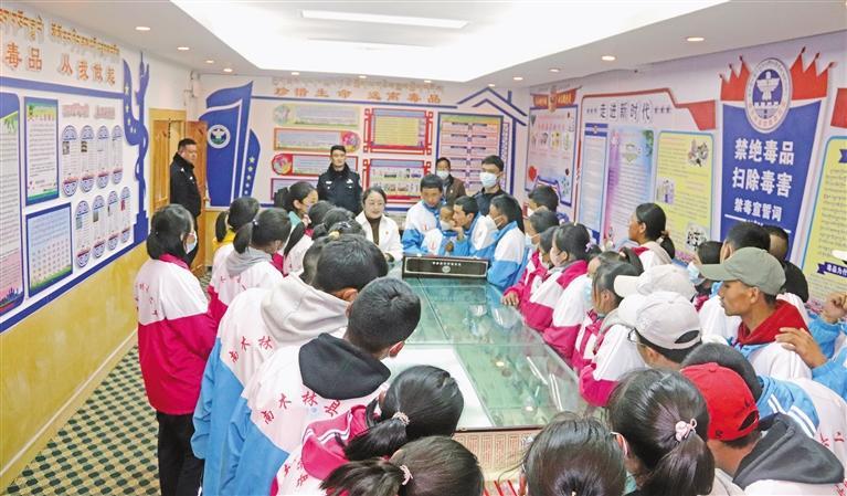 圖為南木林縣中學(xué)生在禁毒民警帶領(lǐng)下,參觀縣公安局禁毒展廳。陳盈 記者 張宇 攝