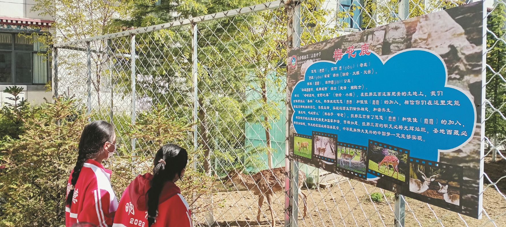 圖為拉薩那曲三高的學(xué)生正在觀看梅花鹿。拉薩融媒記者 齊永昌攝