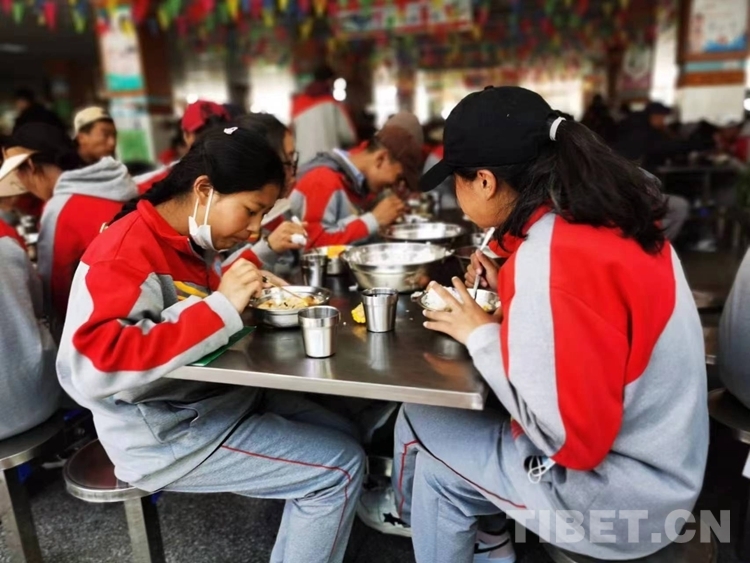 孩子住在學(xué)校,家長最不擔(dān)心的就是飲食問題,在“三包”政策下,學(xué)校食堂免費(fèi)日常供應(yīng)肉蛋奶、蔬菜、水果,營養(yǎng)配餐不僅讓學(xué)生吃得飽,而且吃得有營養(yǎng)。同時,學(xué)校每天還提供糌粑、酥油茶、清茶等西藏傳統(tǒng)食品。