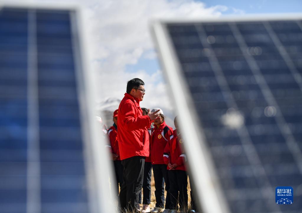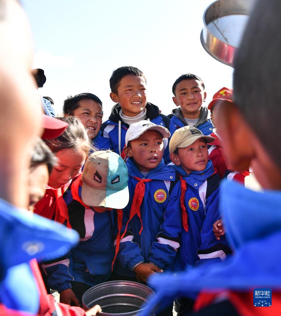 5月15日,扎西宗鄉(xiāng)完全小學的學生們在珠峰站參觀學習。新華社記者 晉美多吉 攝