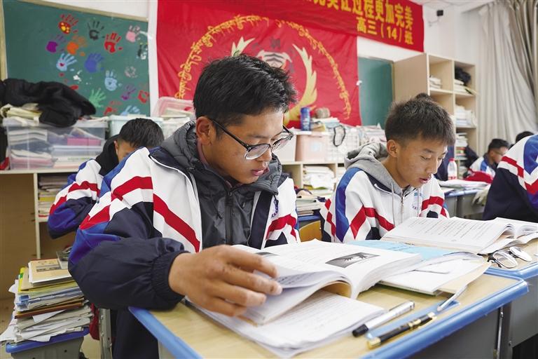“叮鈴鈴”……隨著下課鈴聲響起,教室瞬間“熱鬧”了起來。有的同學(xué)走出教室活動(dòng)久坐的身體、有的同學(xué)拿出習(xí)題冊(cè)和同桌小聲地討論、有的同學(xué)向老師請(qǐng)教不明白的知識(shí)點(diǎn)……清風(fēng)拂過,暖暖的陽光照在這些青春的身影上,演繹出一首屬于青春的奮斗頌歌。“現(xiàn)在是最緊要的關(guān)頭,必須把全部精力投入到學(xué)習(xí)中,爭取多掌握一些知識(shí)點(diǎn)。”高三12班學(xué)生索朗旦增說,“我的目標(biāo)是西南政法大學(xué),希望通過自己的努力能實(shí)現(xiàn)這個(gè)夢(mèng)想?!?/p>