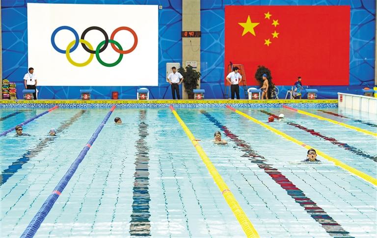 圖為游泳比賽現(xiàn)場(chǎng)。記者 潘多 攝