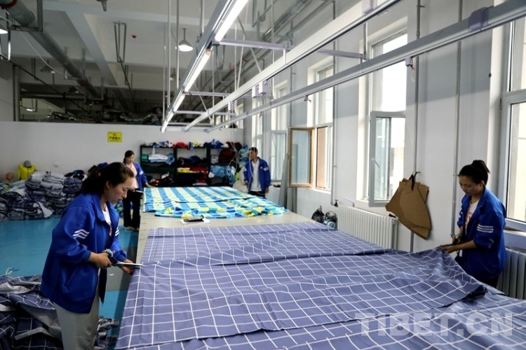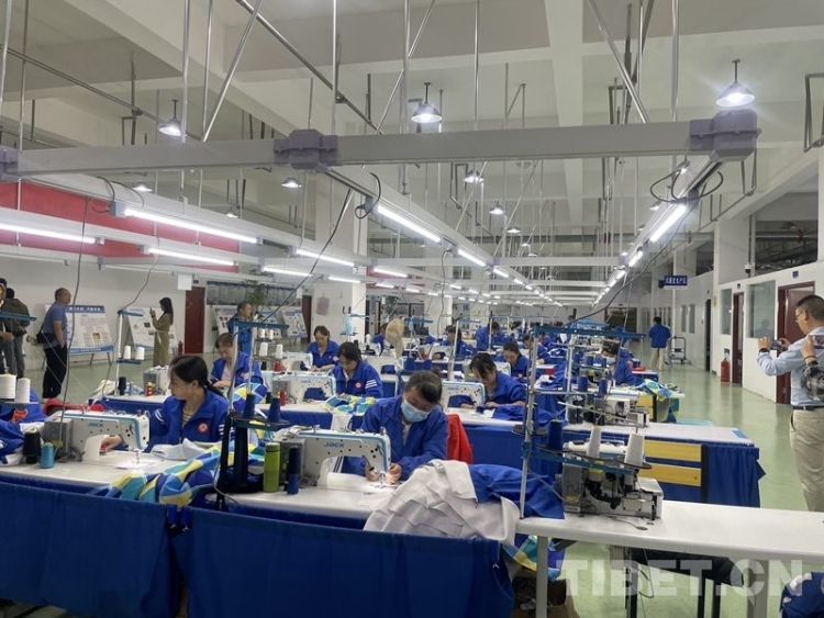 中國西藏網(wǎng)訊 6月28日,位于青海省海東市民和回族土族自治縣的青海洺欽和服飾制作車間內(nèi),電動縫紉機(jī)的噠噠聲不絕于耳,穿著藍(lán)色制服的工人正專注地趕制一批中學(xué)校服。