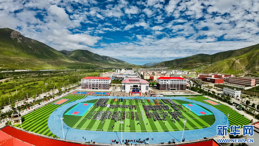 圖為青海省玉樹藏族自治州首屆“江源杯”校園足球聯(lián)賽開幕式現(xiàn)場(chǎng)。(2023年7月3日攝)(受訪單位供圖)