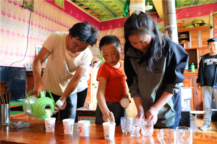 在另一戶村民家里,我們見到了德吉拉姆姐弟倆。姐弟倆非常有禮貌又主動(dòng)熱情地為我們準(zhǔn)備酥油茶、讓座、指路,顯然是父母的“得力小助手”。他們做起事來(lái)一板一眼、舉止落落大方,給我們留下很深刻的印象。