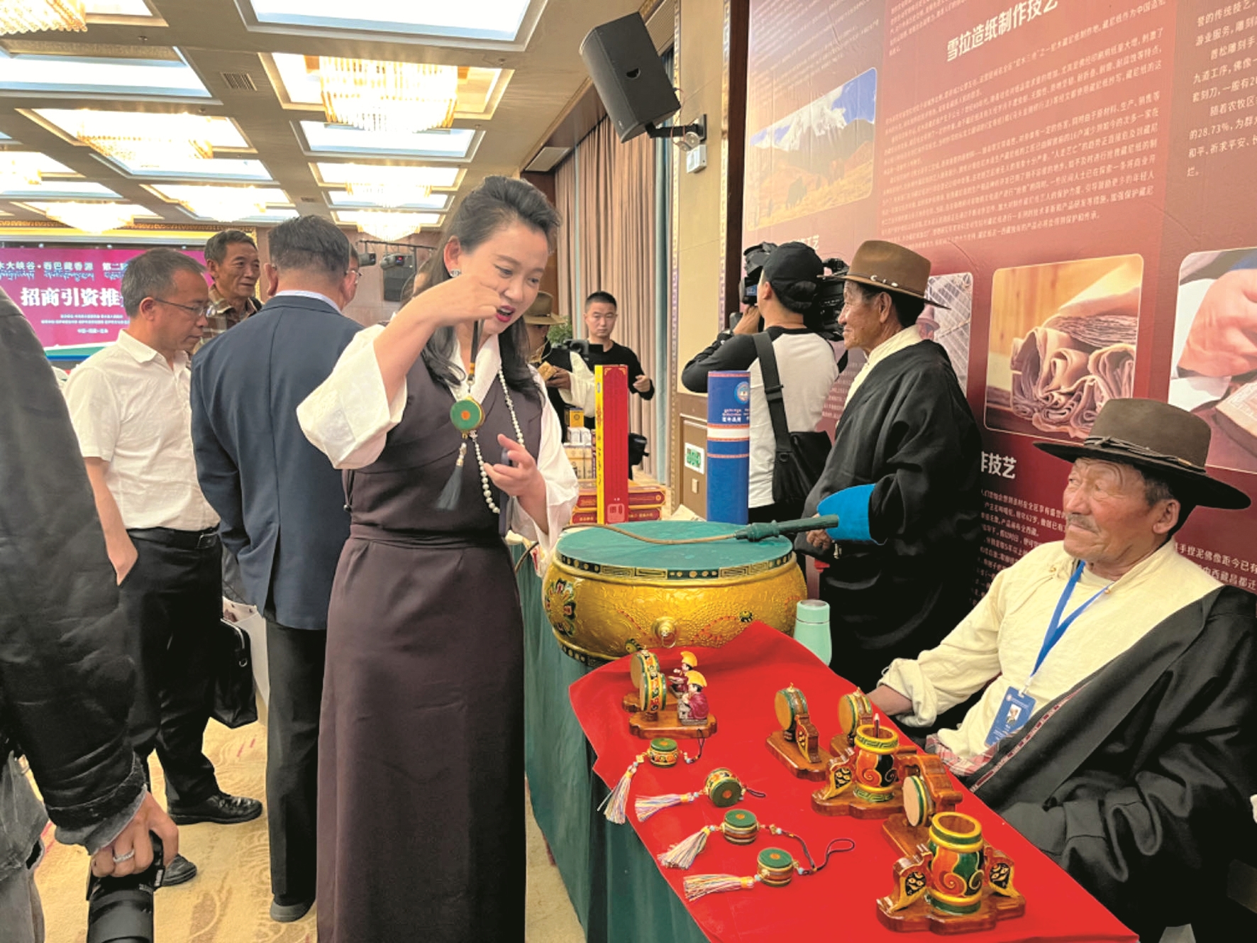 圖為嘉賓正在參觀(guān)尼木縣特色產(chǎn)品。拉薩融媒記者 莫瑞英攝
