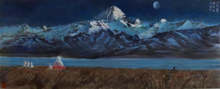 圖為劉洋國畫作品描繪的西藏岡仁波齊?!⒀?供圖