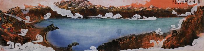 圖為劉洋國畫作品描繪的納木錯圣象天門景觀?!⒀?供圖