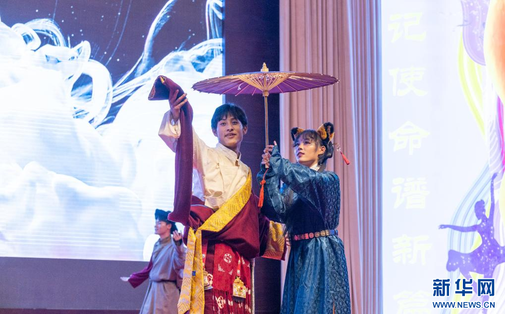 開(kāi)幕式現(xiàn)場(chǎng)學(xué)生們正在表演服裝秀節(jié)目(9月21日攝)。丁增尼達(dá) 攝