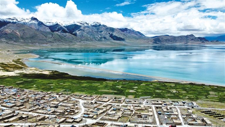 主題教育開展以來,西藏各級各部門深入貫徹落實習(xí)近平生態(tài)文明思想,著力創(chuàng)建國家生態(tài)文明高地取得顯著成效。這是那曲市尼瑪縣文布北村,當(dāng)穹錯碧藍清亮的湖水與湖畔的村落相映,構(gòu)成了一幅人與自然和諧共生的美麗畫卷。(無人機拍攝) 記者 趙書彬 攝
