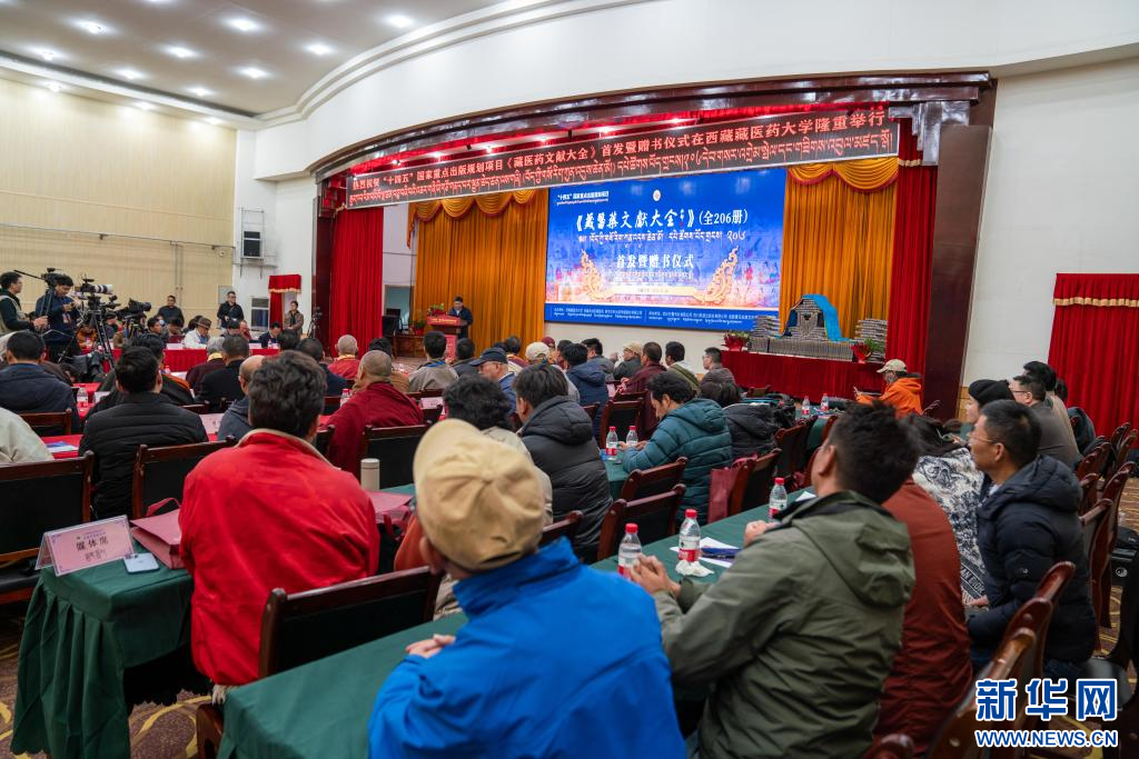 11月16日,“十四五”國家重點(diǎn)出版規(guī)劃項目《藏醫(yī)藥文獻(xiàn)大全》首發(fā)暨贈書儀式現(xiàn)場。新華社記者 旦增尼瑪曲珠 攝