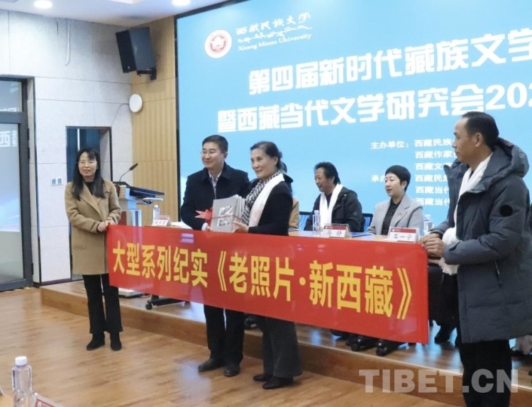 西藏民族大學(xué)校友、作家陳琳女士向西藏民族大學(xué)文學(xué)院贈送了她主編的6卷本大型系列紀(jì)實影像集《老照片·新西藏》。她表示,作為西藏文學(xué)的一名創(chuàng)作者,首先要思考為誰去寫、寫什么的問題,作家應(yīng)該堅持為人民而寫作的立場,堅持從民間和現(xiàn)實生活中汲取力量。