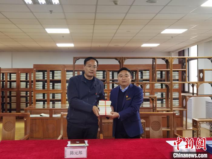 圖為捐贈(zèng)儀式現(xiàn)場(chǎng)。潘雨潔 攝