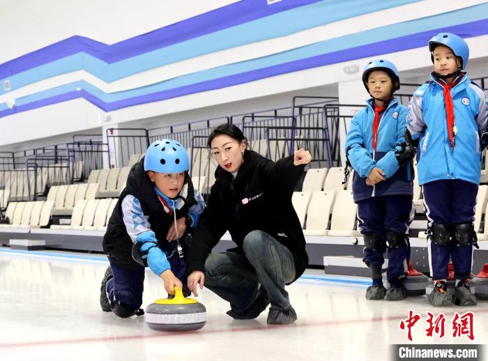 圖為學(xué)生們練習(xí)冰壺投擲。薛蒂 攝