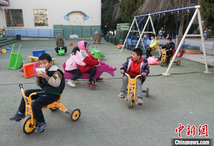12月20日,青海省海東市民和縣中川鄉(xiāng)美一小學(xué)安置點內(nèi)兒童嬉戲?!●R銘言 攝