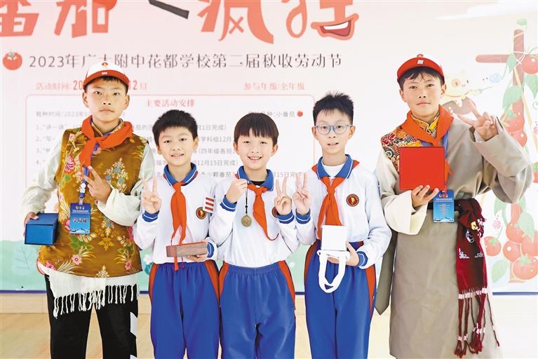 參加冬令營(yíng)活動(dòng)的少先隊(duì)員與廣大附中花都實(shí)驗(yàn)學(xué)校的新朋友互換禮物并合影。記者 謝筱純 王珊 攝