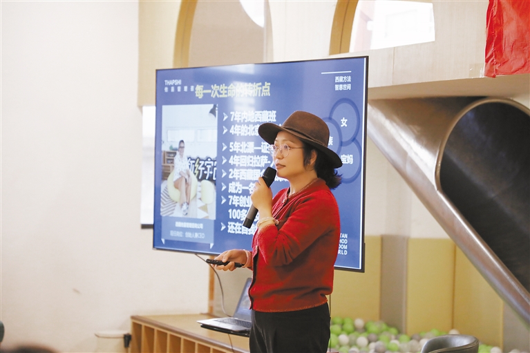 圖為卓瑪向大學(xué)生和農(nóng)牧民創(chuàng)業(yè)者分享創(chuàng)業(yè)經(jīng)驗。
