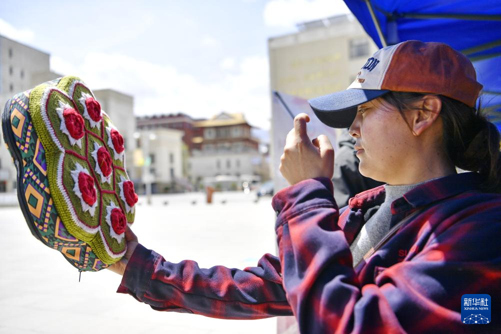 5月12日,在西藏職業(yè)技術(shù)學(xué)院職業(yè)教育活動周啟動儀式暨比如縣非物質(zhì)文化遺產(chǎn)進校園活動上,一名消費者在挑選比如縣的特色旅游產(chǎn)品。新華社記者 張汝鋒 攝