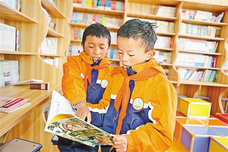 圖為吉隆縣折巴鄉(xiāng)完全小學的學生在閱讀課外書。 次仁央宗 記者 扎西頓珠 攝