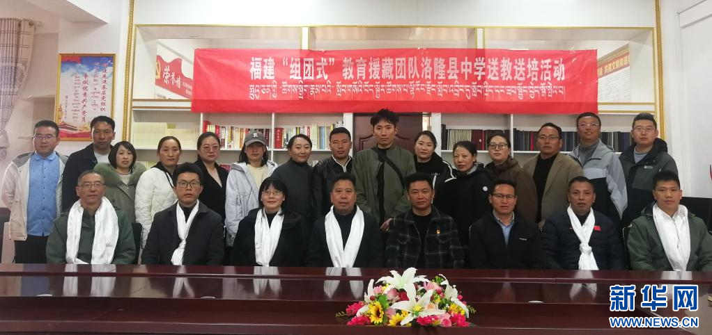 西藏昌都洛隆縣中學領(lǐng)導和加入閩昌名師工作室的老師,與福建“組團式”教育援藏團隊“送教送培”小分隊合影。5月10日攝