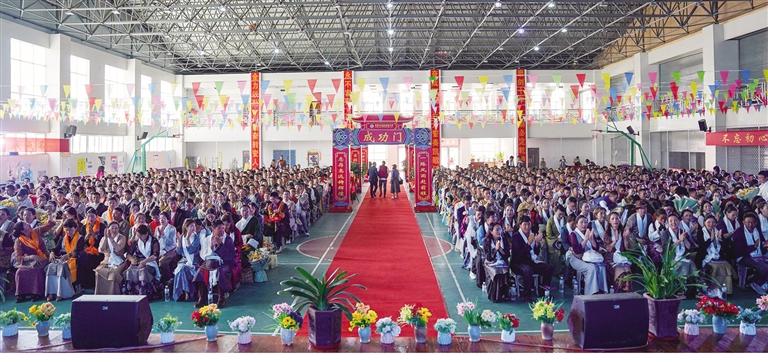 5月29日下午,拉薩市第四高級(jí)中學(xué)舉行2024屆高三年級(jí)成人禮暨畢業(yè)典禮。750余名學(xué)生身著盛裝,頭戴紅色成人禮帽,與老師、家長(zhǎng)共赴這場(chǎng)華麗璀璨的青春盛宴。