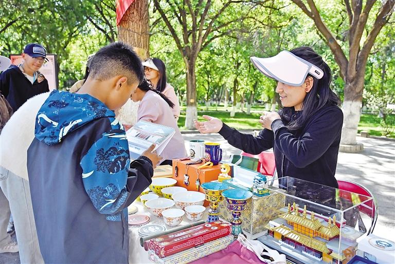 在拉薩市羅布林卡內,工作人員為群眾介紹文創(chuàng)產品。記者 旦增蘭澤 攝