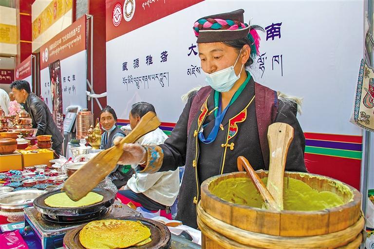 在日喀則市非遺展銷現場,展商在制作蕎麥餅。記者 旦增嘎瓦 楊子彥 扎西頓珠 攝