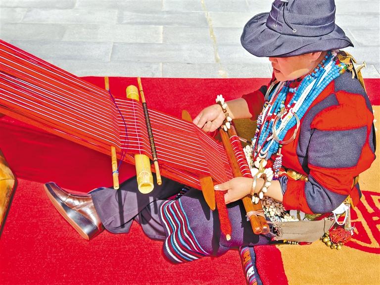 在林芝市非遺活動現場,群眾展示珞巴織布。記者 謝筱純 攝