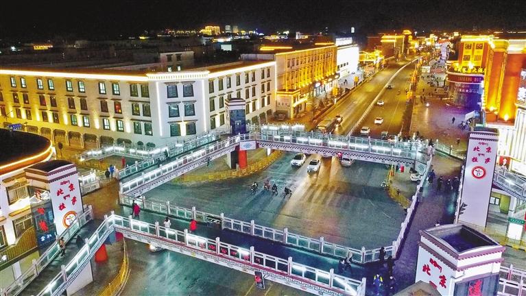 北京市第九批援藏工作隊投入1743.4萬元建設(shè)的、拉薩首座配置電梯的城市人行天橋—“連心橋”。 圖/文 西藏日報記者 盧文靜 劉斯宇 裴聰 北京日報記者 王琪鵬