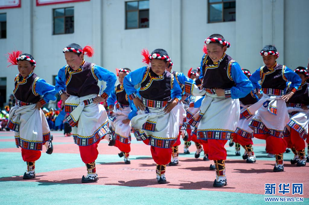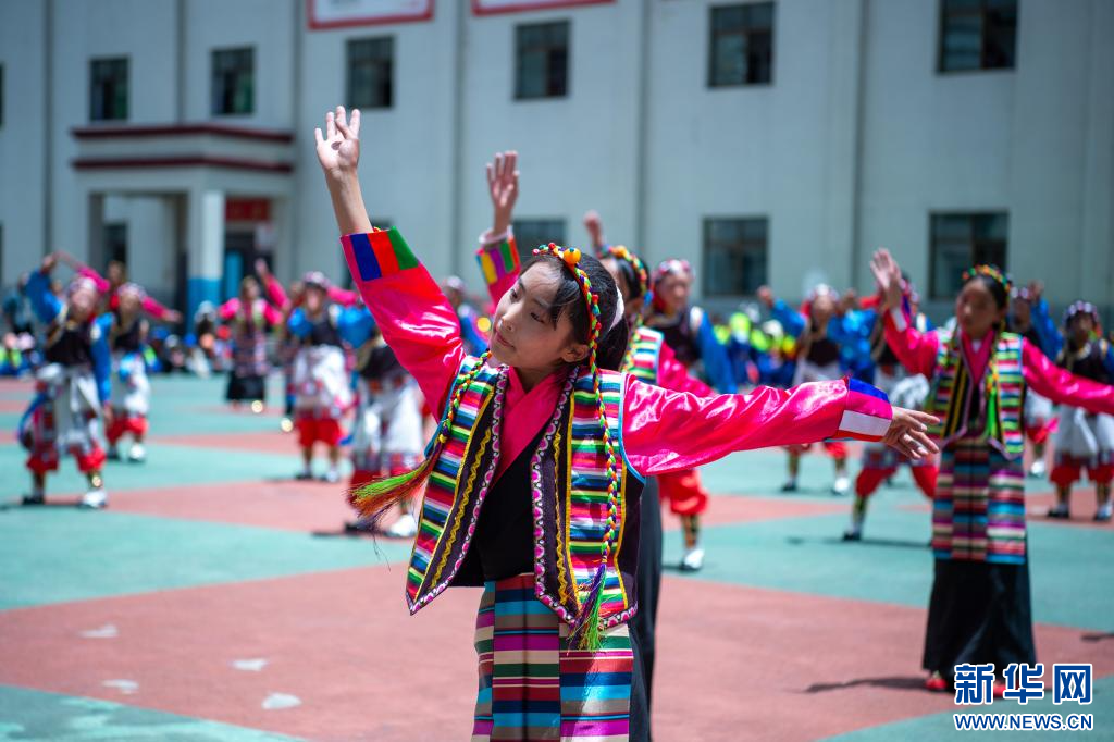 6月21日,乃東區(qū)亞堆鄉(xiāng)小學的學生在表演節(jié)目。新華網(wǎng) 旦增努布 攝