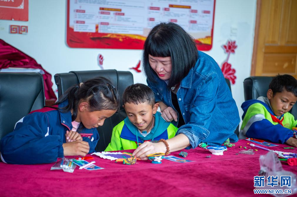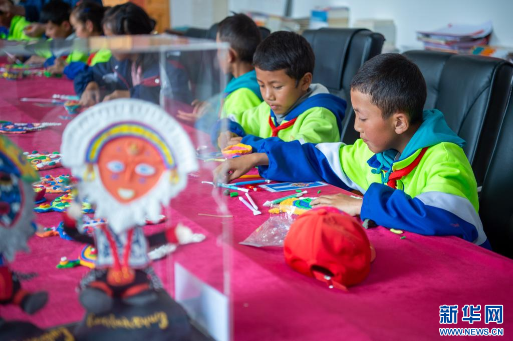 6月21日,乃東區(qū)亞堆鄉(xiāng)小學的學生在興趣課上制作藏戲面具造型。新華網(wǎng) 旦增努布 攝