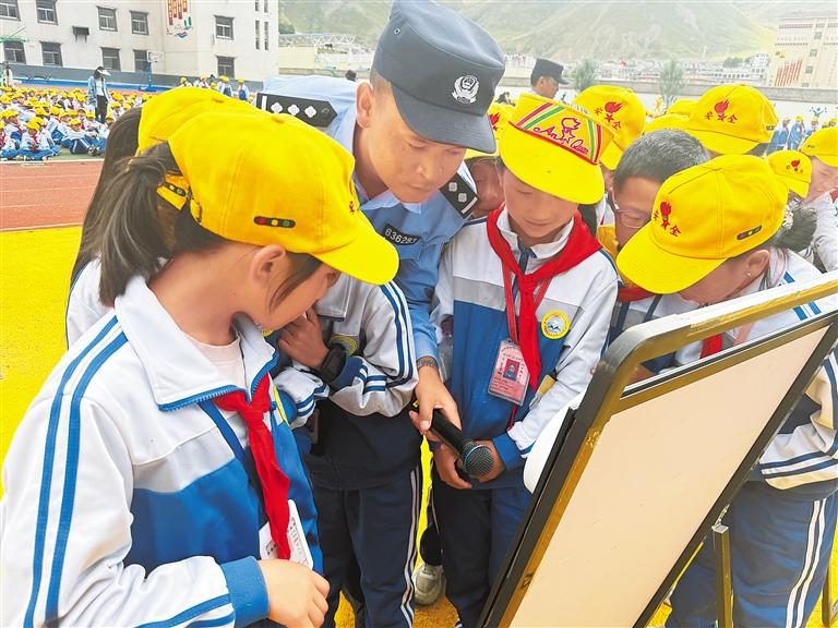 圖為那曲市索縣禁毒民警正在向轄區(qū)學(xué)校的師生宣講禁毒相關(guān)內(nèi)容。記者 萬(wàn)靖 攝