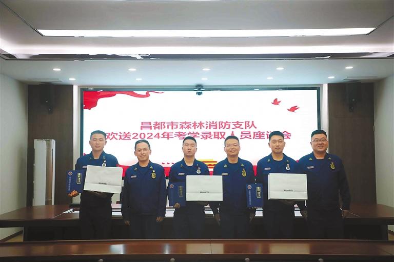 在2024年中國(guó)消防救援學(xué)院面向優(yōu)秀消防員單獨(dú)招生考試中,昌都市森林消防支隊(duì)吳文昊、劉濤和周軍3名消防員以優(yōu)異的成績(jī)考入中國(guó)消防救援學(xué)院。近日,昌都市森林消防支隊(duì)召開(kāi)中國(guó)消防救援學(xué)院錄取消防員歡送座談會(huì)。