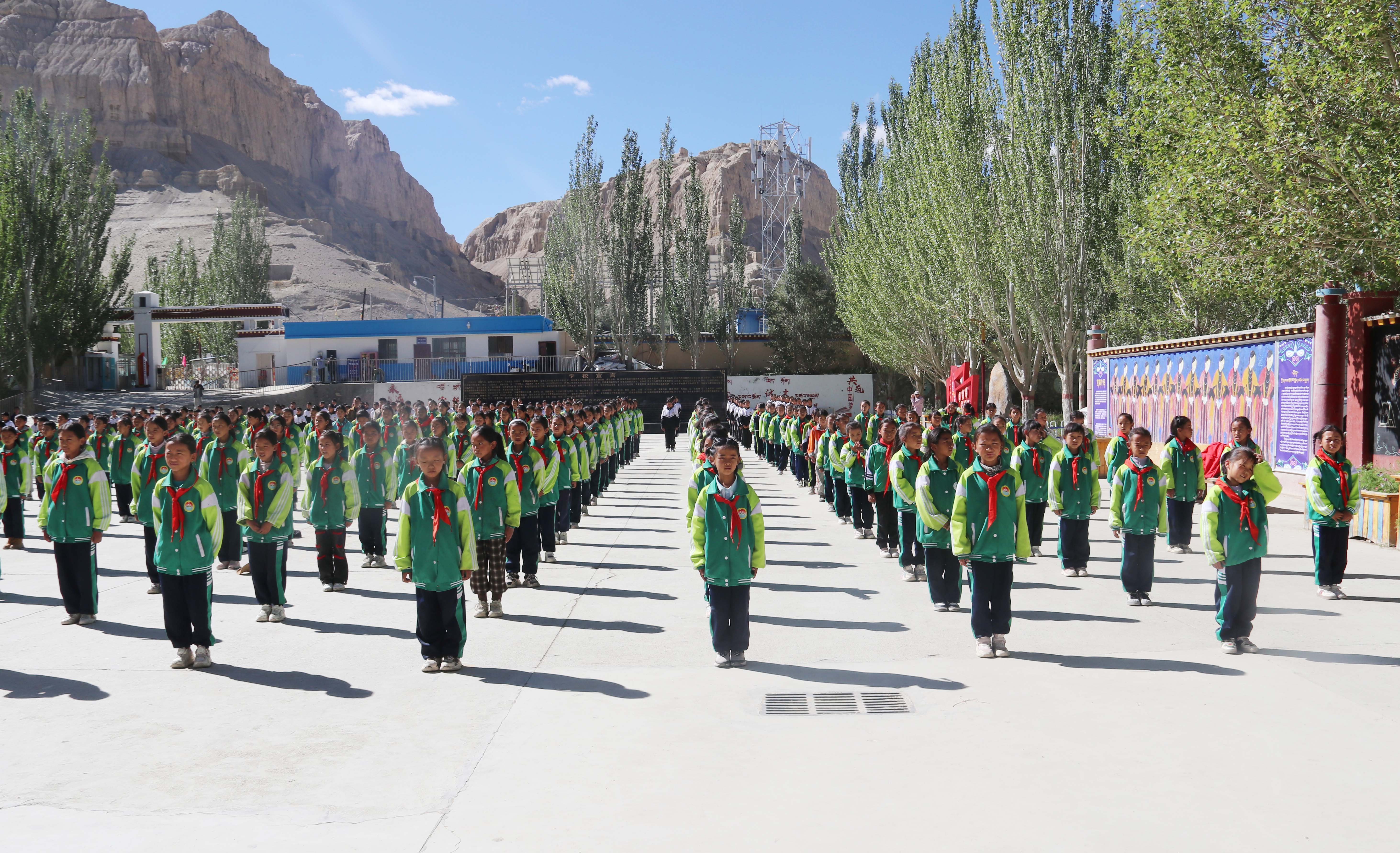 象泉河畔,古格腳下,坐落著札達縣九年一貫制學校。這里有漢、藏、回族的教師,有漢、藏、回、撒拉族的學生,他們在這里融洽地生活、學習,在互幫互助中一起成長……